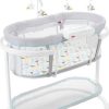 Baby Bassinet & Bedside Sleeper Taking care of your baby has never been easier with our bedside crib. Just slide into place and adjust to any height you need. Ideal for sleeping, breast-feeding and changing diapers. Safely sleeps newborn babies 0-6 months. Safety Certified Construction Every one of our baby bassinets is tested for quality and the highest safety standards so you know you’re buying only the best bedside sleeper for your baby room. Constructed from sturdy aluminum and made with high-grade, non-toxic materials, your baby can rest easily and safely by your side for all-night care. Detachable Side Panel With your bedside crib, reach your baby easily and conveniently by simply unzipping the side panel. No need for getting out of bed. Breathable, mesh siding allows for greater air circulation and visibility so you can keep an eye on your baby. Soft siding easily detaches for regular washing. Adjustable, Adaptable Nine adjustable heights take you from co sleeper baby bed to breast-feeding on the couch, to changing your baby’s diaper without straining your back. Our baby bedside sleeper also adjusts to different angles so you can bottle feed your baby without making a mess. Many Added Features With your bedside bassinet, you also get a waterproof mattress, one extra machine washable sheet, and a music box and 2 detachable toys to keep your baby entertained. For extra safety, our basinets for baby can be fixed to a bed for extra reinforcement.