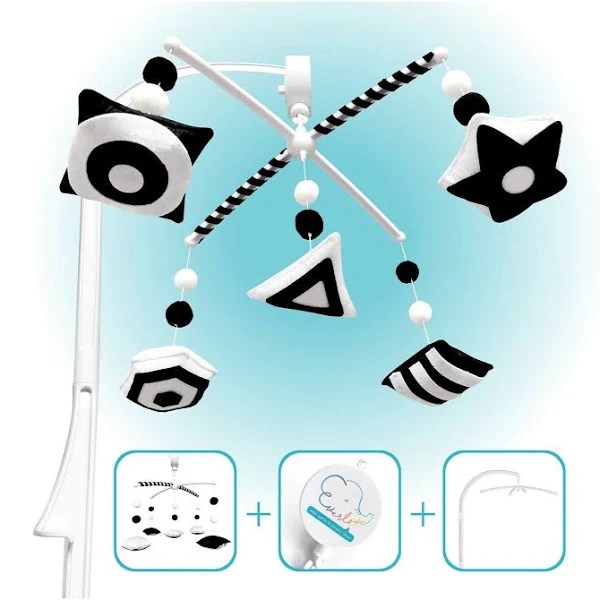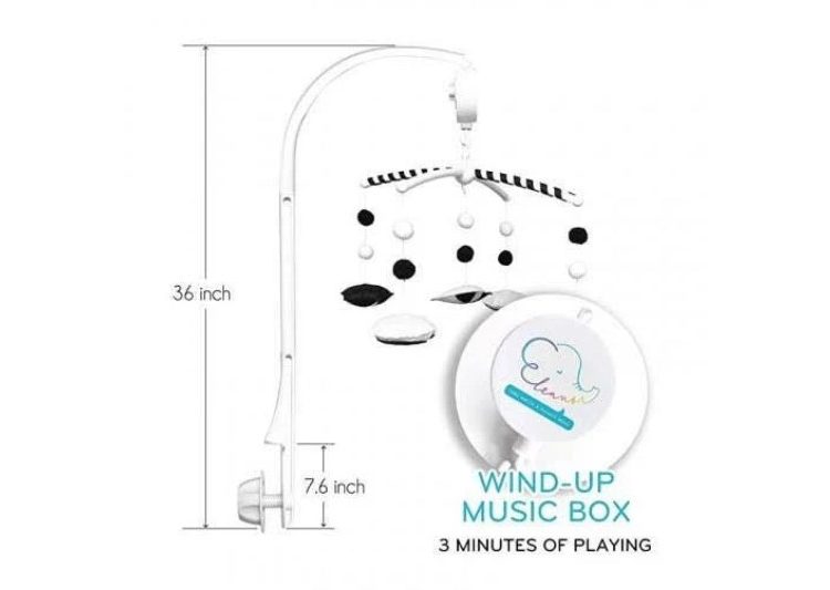 Montessori Mobile Baby Crib With Rotate Musical Box – Black And White