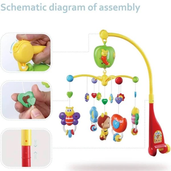 Growthpic Musical Mobile Baby Crib Mobile with Hanging Rotating Toys and Music Box Red
