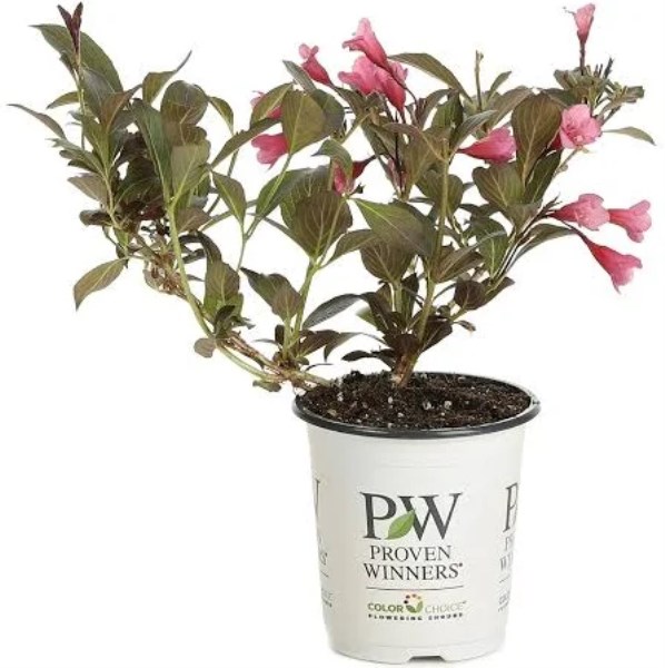 Proven Winners Wine & Roses Reblooming Weigela (Florida) Live Shrub, Pink Flowers and Dark Purple Foliage, 4.5 in. Quart