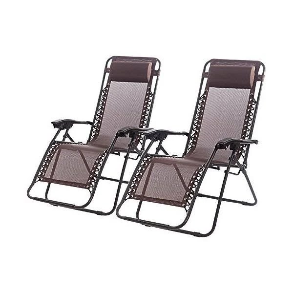 Fdw Set of 2 Zero Gravity Chairs Lounge Patio Chairs Outdoor Yard Beach Brown