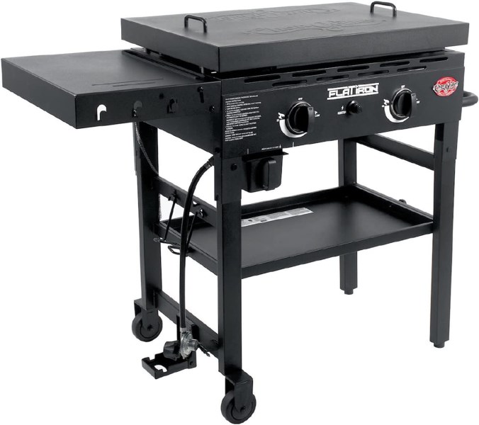Char-Griller 8128 Flat Iron 2 Burner Outdoor Griddle Lid Gas Grill, Black