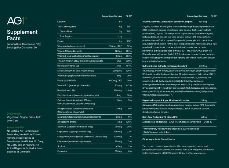 AG1 by Athletic Greens Pouch. 30 Daily Servings. All-in-One Daily Health Drink. 75 Vitamins, Minerals & Whole Food-Sourced Ingredients.