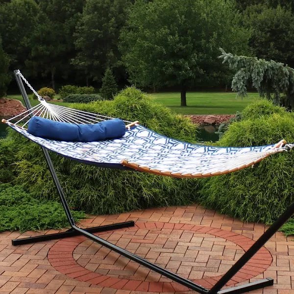 Sunnydaze Decor Quilted Hammock with Curved Spreader Bars Navy and Gray Octagon