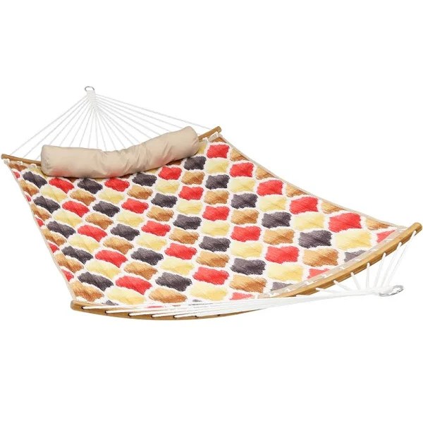 Sunnydaze Decor Quilted Hammock with Curved Spreader Bars – Red and Gold Quatrefoil