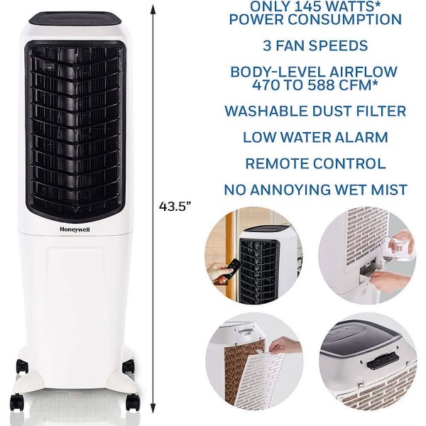 Honeywell 470 CFM Indoor Evaporative Air Cooler (Swamp COOLER) with Remote Control in White