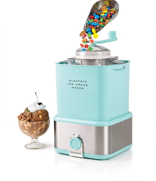 Nostalgia Electric Ice Cream Maker with Candy Crusher – Aqua 2 qt