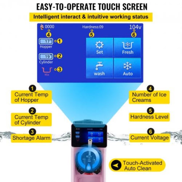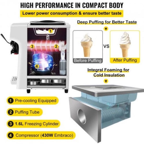 Vevor Commercial Frozen Hard Ice Cream Machine Maker 20 L/H Yogurt Ice Cream Maker