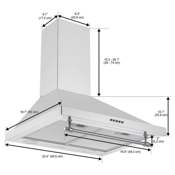 AKDY 30″ Wall Mount Stainless Steel Push Panel Kitchen Range Silver