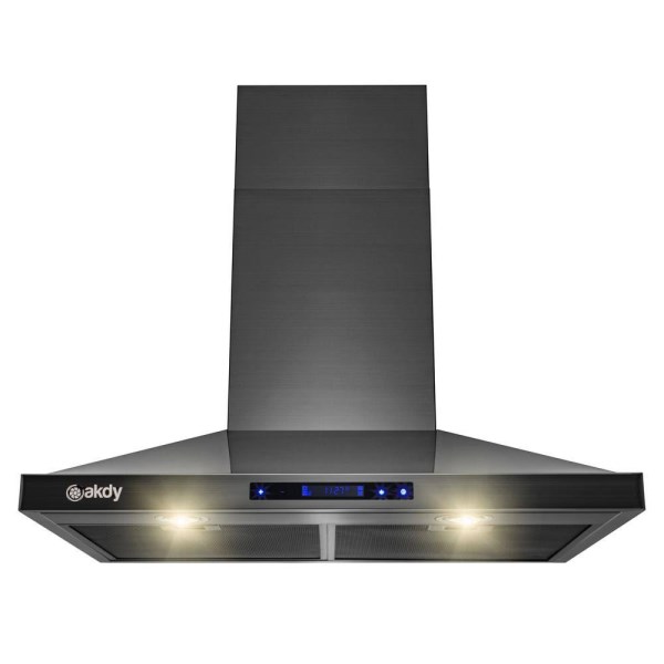 AKDY 30 in. 299 CFM Wall Mount Kitchen Range Hood with Touch Panel in Black Stainless Steel RH0017