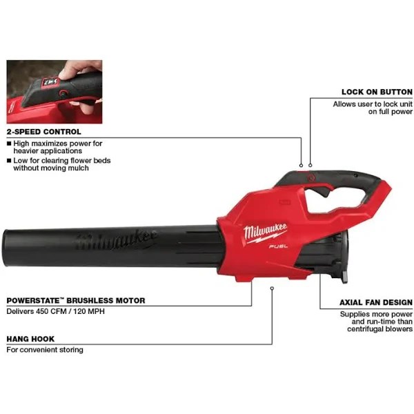 Milwaukee 27242048111850 M18 Fuel 120 MPH 450 CFM 18-Volt Lithium-Ion Brushless Cordless Handheld Blower w/ M18 5.0Ah Battery