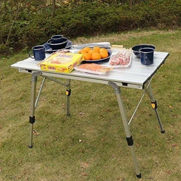 Campland Aluminum Table Height Adjustable Folding Table Camping Outdoor Lightweight for Camping, Beach, Backyards, BBQ, Party