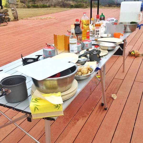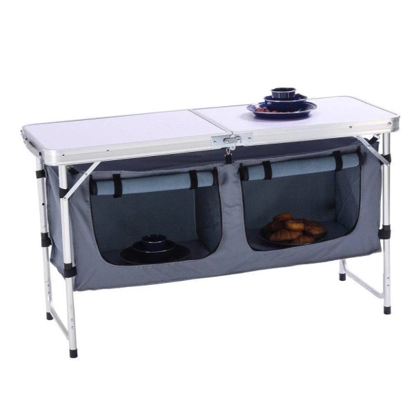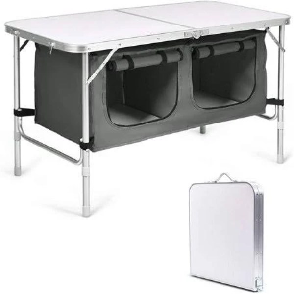 Campland Outdoor Folding Table Aluminum Lightweight Height Adjustable with Storage Organizer for BBQ, Party, Camping
