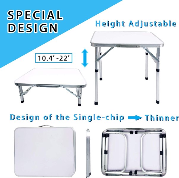 Camp Field Aluminum Folding Small Picnic Table, Adjustable Height Lightweight Portable Camping Table for Picnic Beach Outdoor Indoor (Medium)