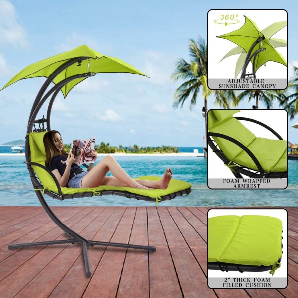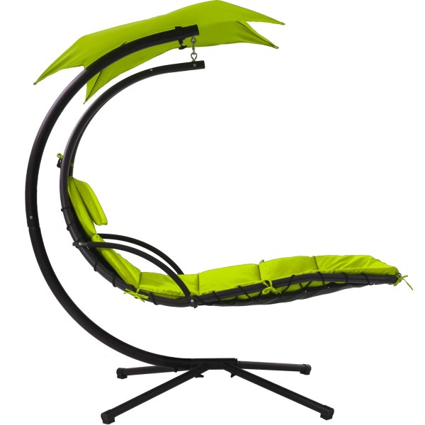 Hanging Chaise Lounge Swing Chair with Umbrella Canopy, Green
