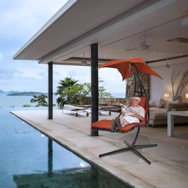 Hanging Chaise Lounge Swing Chair with Umbrella Canopy