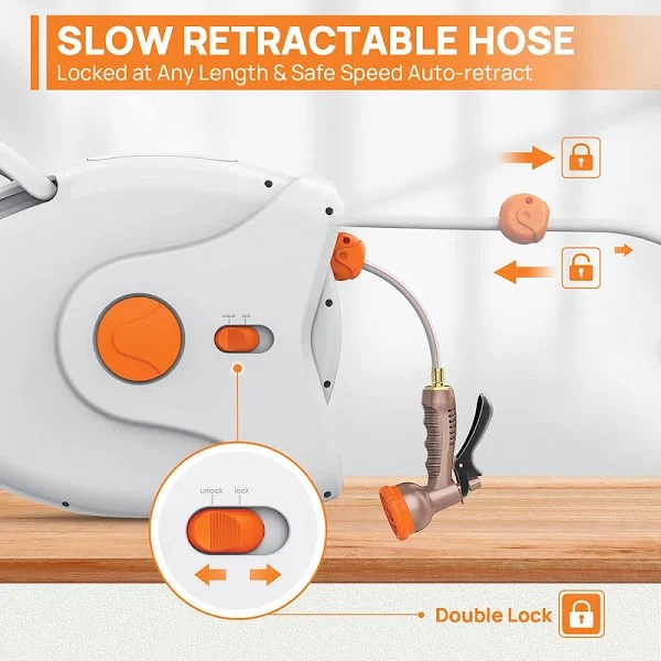 Tacklife HR8 100 Foot Retractable Wall-Mount Hose Reel, White
