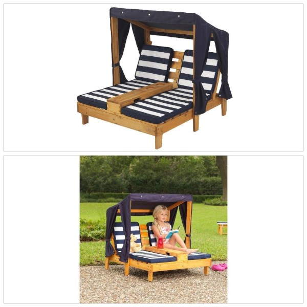 Wiest Double Chaise Lounge with Cushion Color Teak Brown