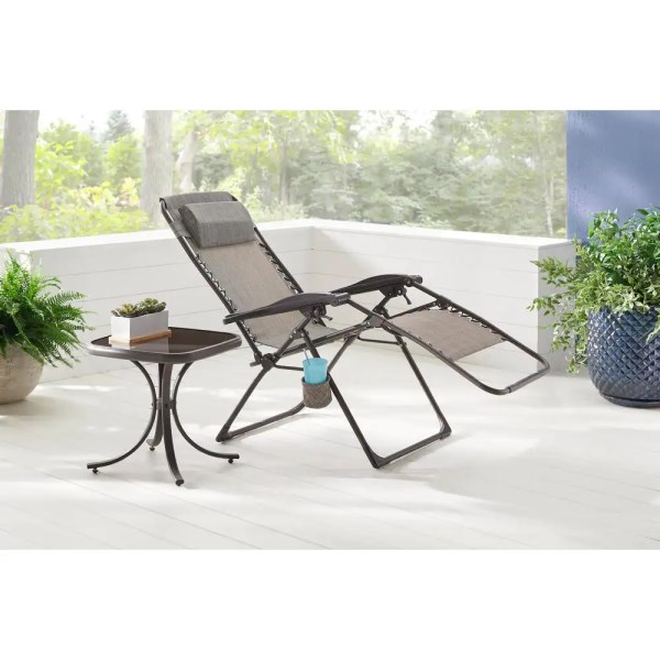 StyleWell Mix and Match Folding Zero Gravity Steel Outdoor Patio Sling Chaise Lounge Chair in Riverbed Taupe
