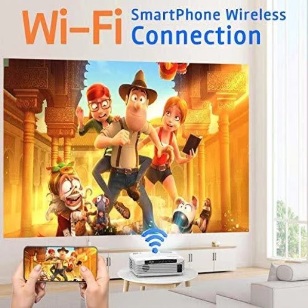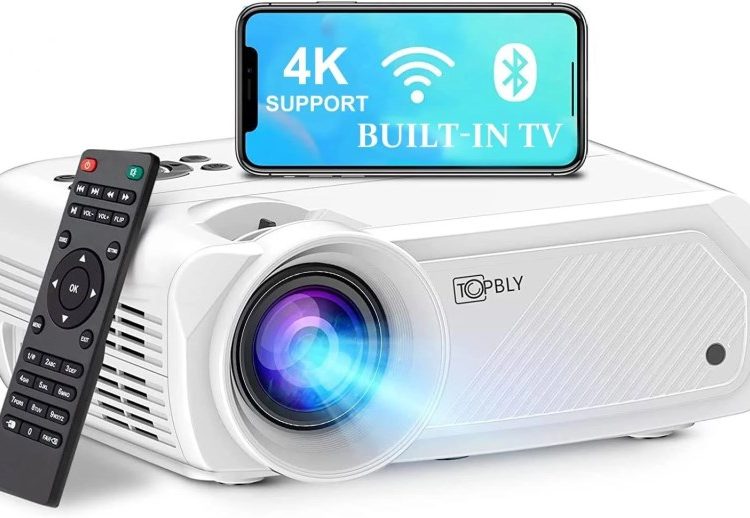 1080p WiFi Bluetooth Projector Built-in TV, TOPBLY 4K Supported with Smartphone Screen Mirroring (Android/iOS) Portable Mini Home Movie Projector