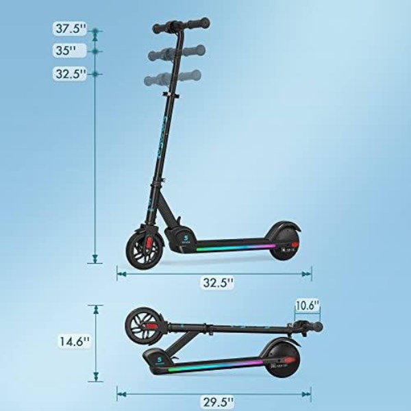 SmooSat E9 Pro Electric Scooter for Kids, Colorful Rainbow Lights, LED Display, Adjustable Speed and Height, Foldable and Lightweight Electric