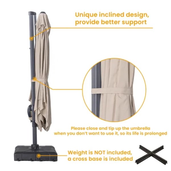 Best Choice Products 10ft Solar LED Offset Hanging Outdoor Market Patio Umbrella w/ Easy Tilt Adjustment – Tan