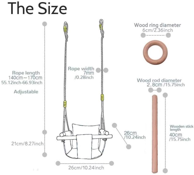 Dilimi Baby Canvas Hanging Swing Seat Toddler Secure Indoor & Outdoor Hammock Toy Grey