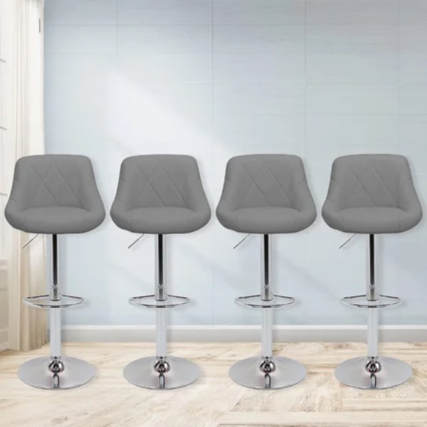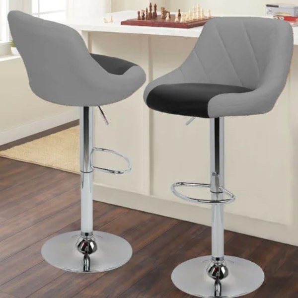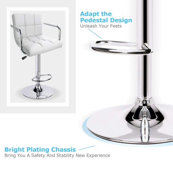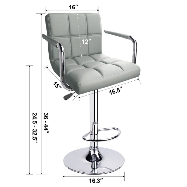 Bar Stools with Back & Arms | Adjustable Swivel Counter Stool with Armrest – Homekoko, Light Grey