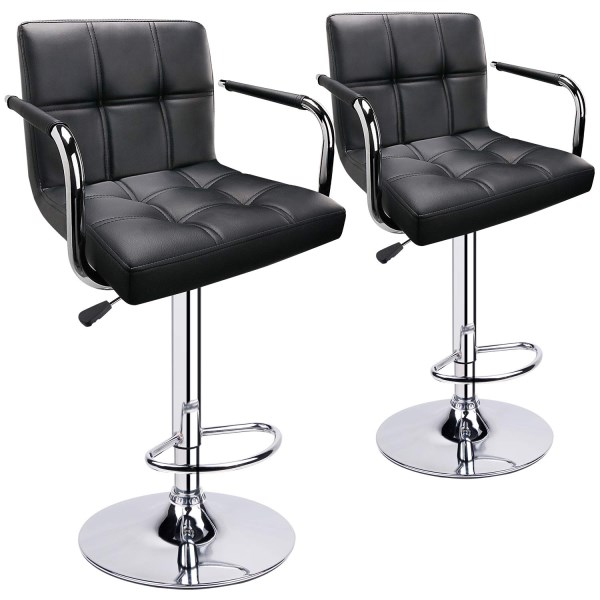 Leopard Adjustable Bar Stools with Armrest, Square Back Swivel Double Black