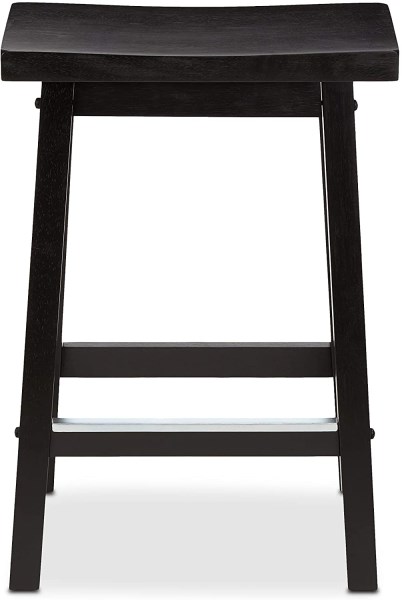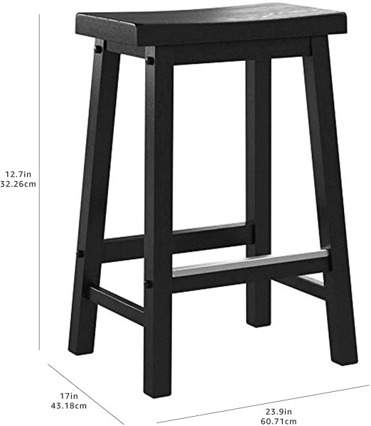 Classic Solid Wood Saddle-Seat Kitchen Counter Stool with Foot Plate 29 inch, Black, Set of 2