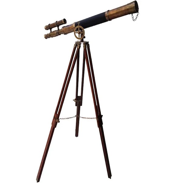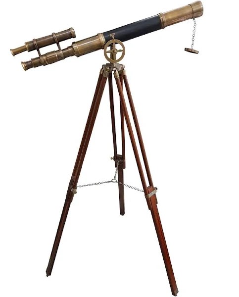 Maritime Brass Antique Double Barrel Designer Telescope with Wooden Tripod Floor Standing Telescopic Tripods – collectiblesBuy