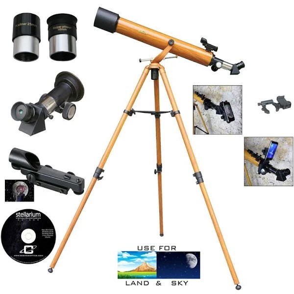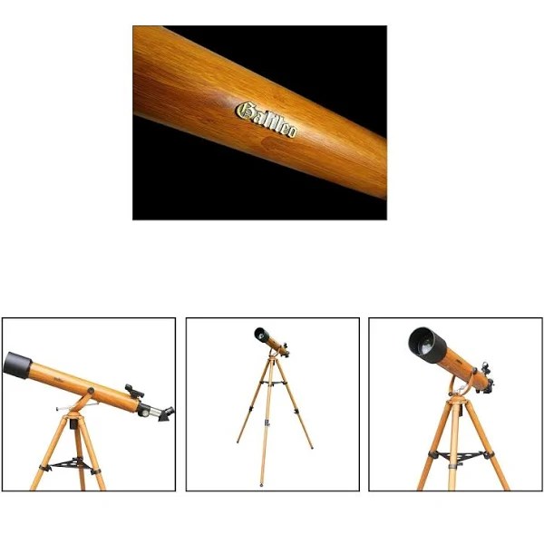 Galileo 800mm x 60mm Woodgrain Refractor Telescope with Smartphone Adapter, Wood Grain