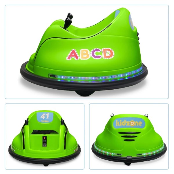 Kidzone DIY Number Kids Toy Electric Ride on Bumper Car Vehicle Remote Control 360 Spin ASTM-Certified 1.5-6 Years, Size: 12V, Green