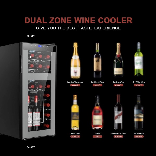 Maisee Dual Zone Wine Cooler Refrigerator Chiller Fridge Upper Zone 44f-54f Lower Zone 54f-65f for Red White Wine Champagne Sparkling in Home Office