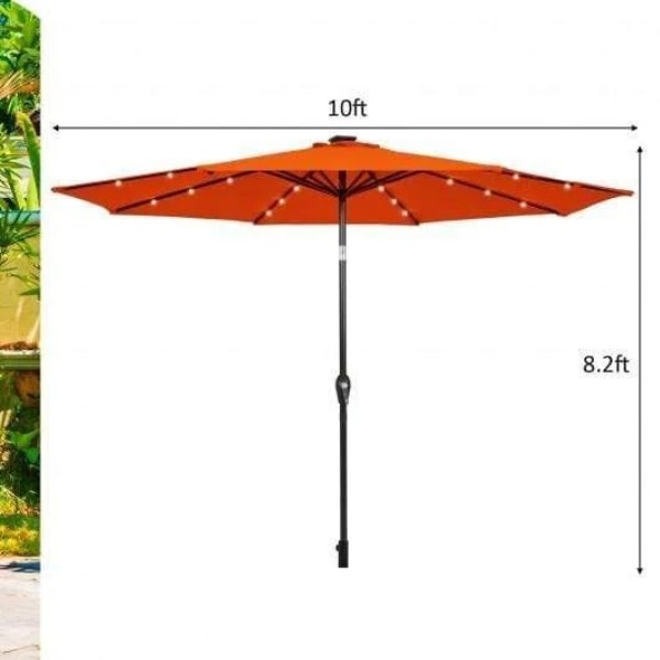 10′ Solar LED Lighted Patio Market Umbrella Shade Tilt Adjustment Crank – Orange