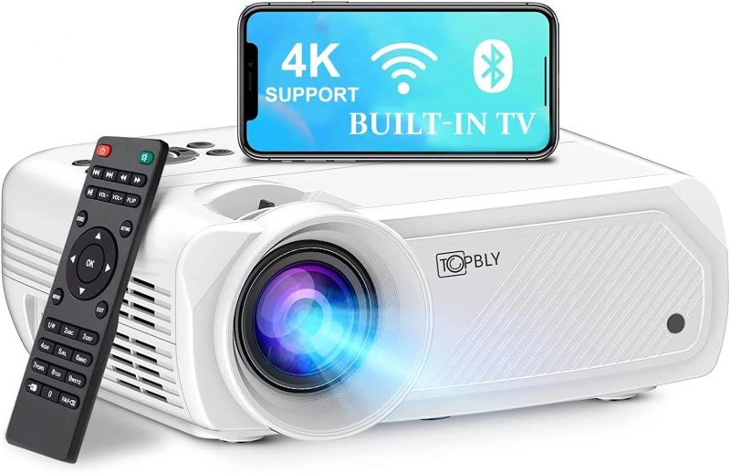 【Built-in TV】TOPBLY Projector= Smart TV + Game Console! 2021 new upgraded wireless projector supports 50,000+ APPs and games and movies. No need to buy fire TV Stick at all and enjoy a rich projection life directly. 【Wireless Connection & Wired Connection】No more being tied to wires, easy screen projection! The video projector connects directly to WiFi to watch movies, and you can also connect to WiFi mirroring with your smartphone, or connect to Bluetooth devices. There is also HDMI VGA USB Port wired connection. Choose your connection method at will. 【9500L & 6000:1 Contrast】The TOPBLY mini movie projector creates stunning upgraded 720p 240-ANSI lumen images. This projector is ideal for the family to enjoy movies. A maximum 230-inch image lets you enjoy entertainment anywhere. Immersive audio can be heard no matter how far away it is. 【Mouse Control & Noise Reduction】Remote control chip upgrade! The smart projector can switch between push-button control and mouse control depending on your needs. Equipped with an innovative cooling system and noise reduction technology, down to 30dB, it won’t disturb you watching movies or working. The cute projector measures 22*17*7.8cm (8.6*6.9*3in).
