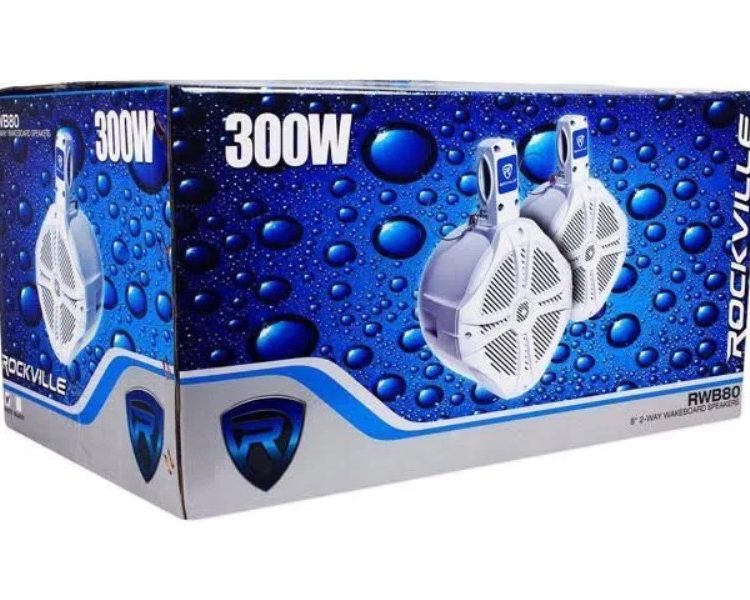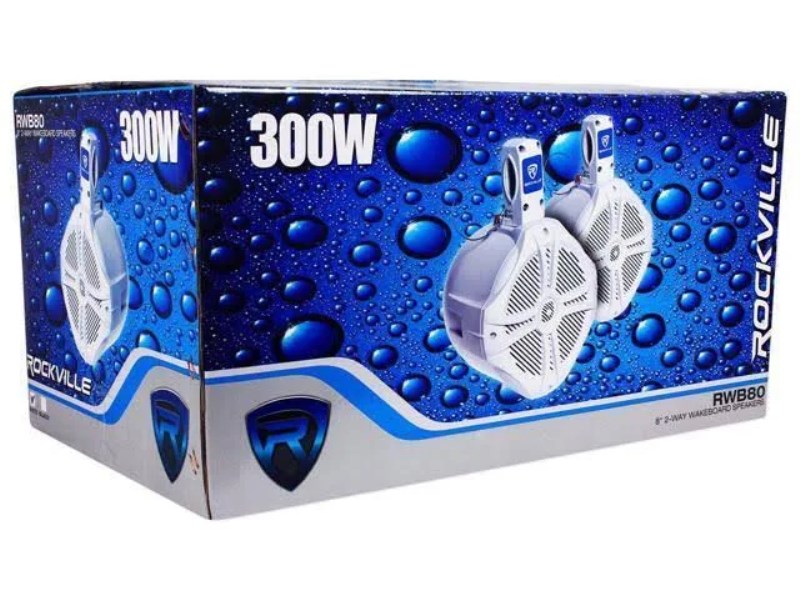 Package Includes: (1) Pair of Rockville RWB80W 8″ White 2 Way Marine Wakeboard Tower Speakers Totaling 600 Watt HOW TO RWB SERIES (RWB65B, RWB65W, RWB70B, RWB70W, RWB80B, RWB80W, RWB90W, RWB90B):Video of RWB80W:AuthorizedRockville Dealer! Advantages of the RWB80W: No exaggerated power ratings: These speakers are rated with true world RMS ratings. No bootleg or exaggerated power ratings like other brands. These speakers are 200 watts RMS and 300 watts peak. (200 watts RMS is equal to about 500 watts rated by other brands) New and improved mounting bracket reinforced with steel – The mounting brackets are waterproof and durable plastic. They are reinforced with nylon and steel to make them extra strong. The nylon allows easy adjusting while the strength of steel can withstand the toughest conditions. Marine grade components and materials: these speakers are truly marine grade. They will not get damaged by water, salt water, or moisture. In addition the terminals (which are normally the first part of a marine speakers that gets damaged by water are made out of stainless steel and they are completely rustproof. There is also an additional waterproof coating cut completely protect the speakers. Features: Rockville RWB80W Pair of 8″ White WakeBoard Tower Speakers Totaling 600 Watts (300 Watts per speaker) 8″ Two-Way High Fidelity Speaker System Adjustable Nylon Mounting Bracket Reinforced With Embedded Steel Includes Stainless Steel Mounting Hardware 1″ Polymide Dome Neodymium Midrange Tweeter Built-In Two-Way Crossover Network Fully Marinized Against Salt & Fresh Water Conditions Completely Water / Rust Resistant Terminals Are Sealed with Rubber Gaskets Specially Tuned for PA Voice Ove