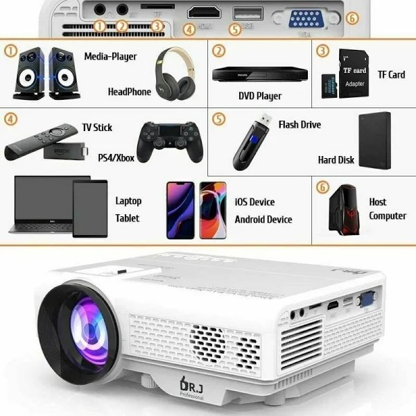4500Lumens Portable Projector for Home Theater Entertainment, Full HD