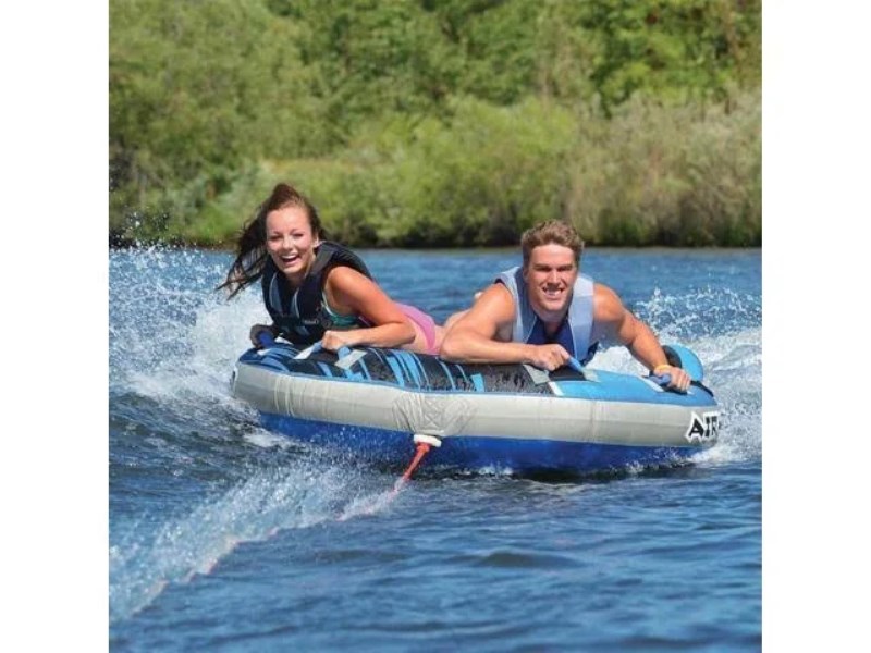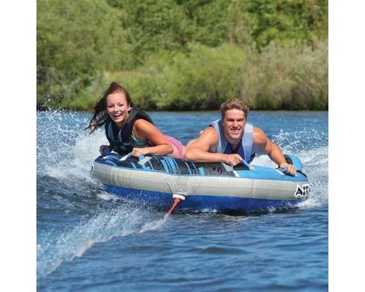It is a wild ride for up to 2 thrill-seekers. Defy centrifugal force with G-Force’s topside stabilizer fins. The 4 deluxe nylon-wrapped handles with neoprene knuckle guards provide a sure and comfortable grip. G-Force has a tough heavy gauge virgin PVC bladder, fully covered with a durable double-stitched nylon cover. Size: 64″ L x 60″ W x 11″ H.