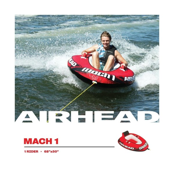 With an inflatable floor where riders sit low, toward the back of the tube, the Mach 1 provides a stable ride that rarely flips on waves or wakes—even at high speeds. Nylon handles with neoprene knuckle guards offer a comfortable, secure hold for young and old alike. Use the Boston valve to quickly inflate or deflate the heavy-gauge PVC bladder. A Kwik-Connect tow point starts one watersports adventure after another in very little time. With welded seams, it’s built to withstand years of use and abuse. A double-stitched nylon cover included with Airhead’s Mach 1 Cockpit Towable Tube offers even more protection