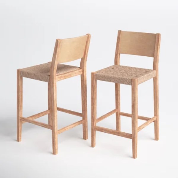 Joss & Main This barstool is made in the spirit of midcentury modern design with just a hint of rustic farmhouse sentiment. The natural-toned frame is made of solid rubberwood and is equipped with footrails for added stability and convenience. A handwoven basketweave seat provides stylish comfort, while an angled backrest allows for easy leaning.