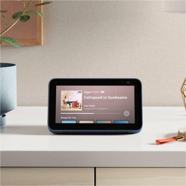 Echo Show 5 (2nd Gen, 2021 release) | Smart display with Alexa and 2 MP camera | Charcoal Make other nightstands jealous Get a jump on your day with the Echo Show 5 and Alexa in your corner. Customize your morning routine to wake up with lights that simulate sunrise and an alarm that plays your favorite song. A glance at your calendar or the news, catch up on a podcast, make video calls to friends and family, set timers, and stream music or shows—all using just your voice. Enjoy a smarter smart home with the Echo Show 5 Paired with compatible light bulbs, thermostats, and more, Echo Show 5 lets you control your smart home using your voice or the interactive display. You can also schedule Routines or even start them with your motion. When you walk into a room, the lamp can turn on or music can start to play—just like that. Look in when you’re out Securely access the built-in camera to look around and get peace of mind whenever you want. You can also set up Guard for free in the Alexa app to get mobile alerts if your Echo device detects the sound of a smoke alarm or glass breaking while you’re away. And subscribe to Guard Plus for hands-free calling to emergency response agents through your Echo and more. What’s in the box 1 x Echo Show 5 1 x Power Adapter (15 W)/cable (4.9 Ft.) 1 x Quick Start Guide.