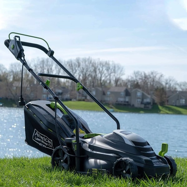 The American Lawn Mower electric corded push mower provides a clean, reliable cut every time. The 11-Amp motor is powerful enough to tackle the toughest mowing jobs and is a great mower for homeowners that maintain small lawns. This lean, mean, compact mower will take care of all the hard work in a fashion with no oil or gas. This mower starts every time with just a push of a button and is always ready when you are. With the adjustable handle length, this mower can be custom fit to accommodate all users. The 14 in. steel blade will cut grass clean anywhere from 1 in. to 2. 5 in. H with the 5-position easy-adjust cutting height options. This mower also features a grass bag with a level indicator allowing users to know when the bag is full. The lightweight and compact design makes this mower extremely easy to operate and even easier to store when not in use. 2-year manufacturer .
