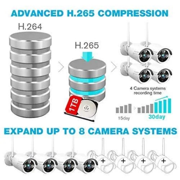 Anni 4CH 1080p HD CCTV Wireless Security System with 1TB Hard Drive, WiFi NVR Kit and (4) 2.0mp Megapixel Wireless Indoor Outdo
