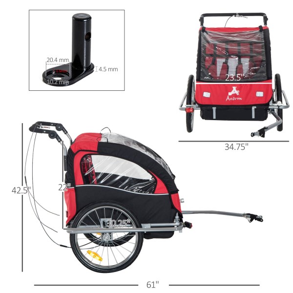 - 2-in-1 design double child bike stroller, trailer, and jogger for the perfect blend of functions and features in one family-friendly unit.