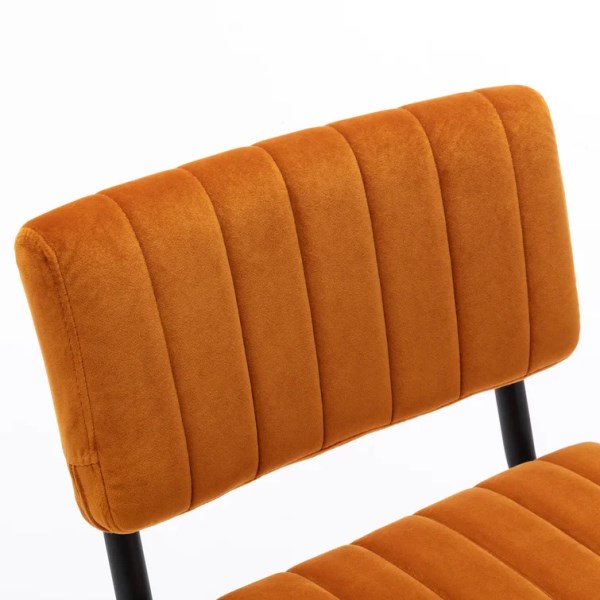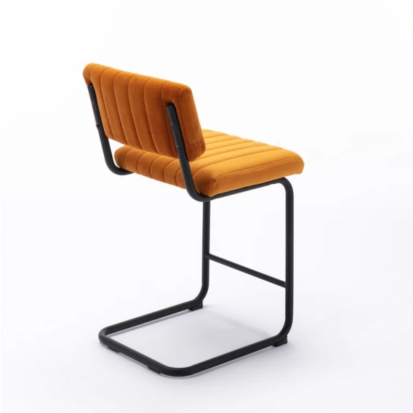 Each stool stands on a cantilever base made from steel with a black finish, and they have a built-in stretcher bar to help support your feet. The rectangle back and seat are upholstered in velvet fabric with your choice of jewel tone. They’re also filled with foam for lots of support while you eat or sip a cold drink during happy hour. Plus, these stools feature plastic glides that protect your floors.