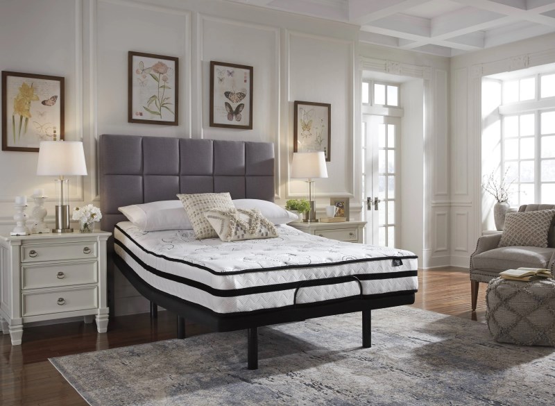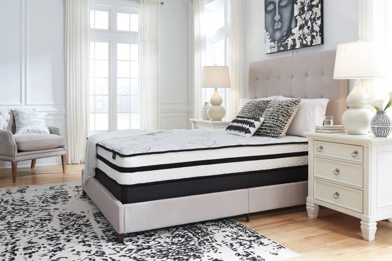Enjoy endless possibilities for a restful night of sleep with a Signature Design by Ashley 10 inch Chime Hybrid Mattress. With this convenient product, users get the best of both worlds. It offers the pressure relief of cooling, gel-infused memory foam coupled with body contouring pocketed coils for superior support. This hybrid innerspring queen mattress is made with high-density quilt foam and provides a comforting feel that makes it easy to catch some Zs. It arrives in a box and is quick and easy to set up. Simply bring it to the desired room, cut away the plastic wrap and unroll. It will expand fully within minutes. It is convenient and makes a practical choice for guest bedrooms, dorms and more. This mattress is also available in a wide range of sizes, so you can select the one that best suits your needs. Use the Signature Design by Ashley 10 inch Chime Hybrid Mattress on its own, or pair it with a box spring and frame to complete the bed set.