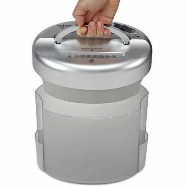 Designed for economical document security, this light duty desktop paper shredder is ideal for occasional home / office use. Durable steel cutters destroys documents into 1/5″ x 1 17/20 ” pieces, shredding 4-folded sheets of paper or 1 credit card per pass. The AS420C includes an integrated 1.32-gallon translucent gray wastebasket. Recessed collapsible handle allows easy removal of shredder head to empty wastebasket.
