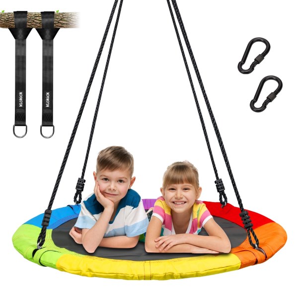 KLOKICK 700lb 40 Inch Detachable Swing Sets Saucer Tree Swing Set for Kids Adults 900D Oxford Waterproof, 2pcs 10ft Tree Hanging Straps, Steel Frame and Adjustable Ropes KLOKICK 40 inch Saucer Swing with Swivel is made of 900D Oxford fabric that is thicker and safer. Detachable Swing Sets, There are 2 ways to hang swing back and forth directly. The galvanized steel frame is anti-rust and weather-resistant, with a tight weave fabric seat that fits 3 kids or two adults. Backyard swing or playground fun for children, teens, and adults.