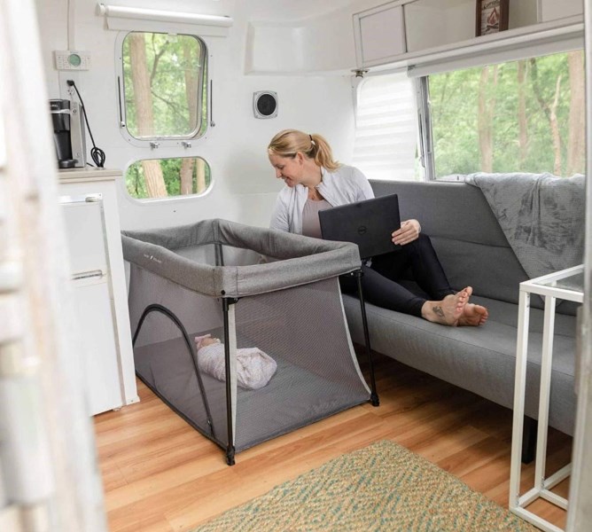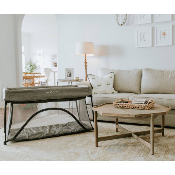 Pre-Owned — The Go With Me Nod Portable Playard was created to give your little one a safe and stylish place to sleep at home and on the go. The Nod can be assembled in seconds with no tools needed. A plush mattress gives your baby a comfortable place to sleep while the mesh walls are ideal for air flow and visibility. The zipper door allows you to lay next to your little one and comfort her when needed. And when messes happen (because they do!), the fabric is fully removable and can be machine washed. When it’s time to travel or store the Travel Crib away, simply click two buttons to fold it compactly and put it into the included travel bag.